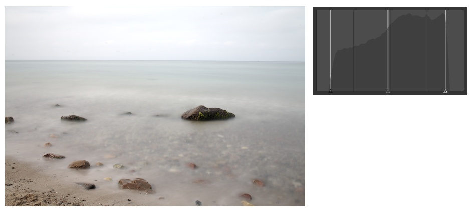 Damit das Outputbild den kompletten verfügbaren Tonumfang umfasst bewegen Sie die Schwarzmarkierung (linker Anfasser) bis an den linken Rand des Histogramms und entsprechend die Weissmarkierung an den rechten Rand des Histogramms. Ein ursprünglich flau wirkendes Bild wird dadurch bedeutend kontrastreicher.